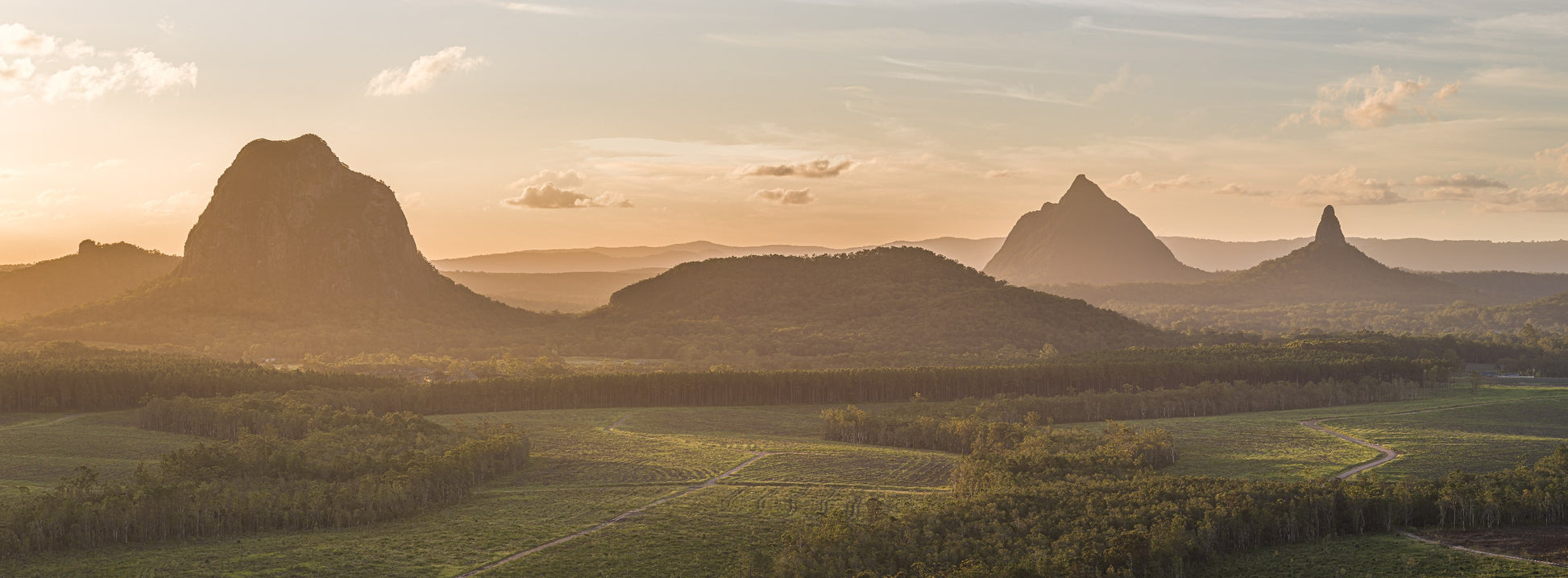 Sunset on the Glass House Mountains on Queensland's Sunshine Coast