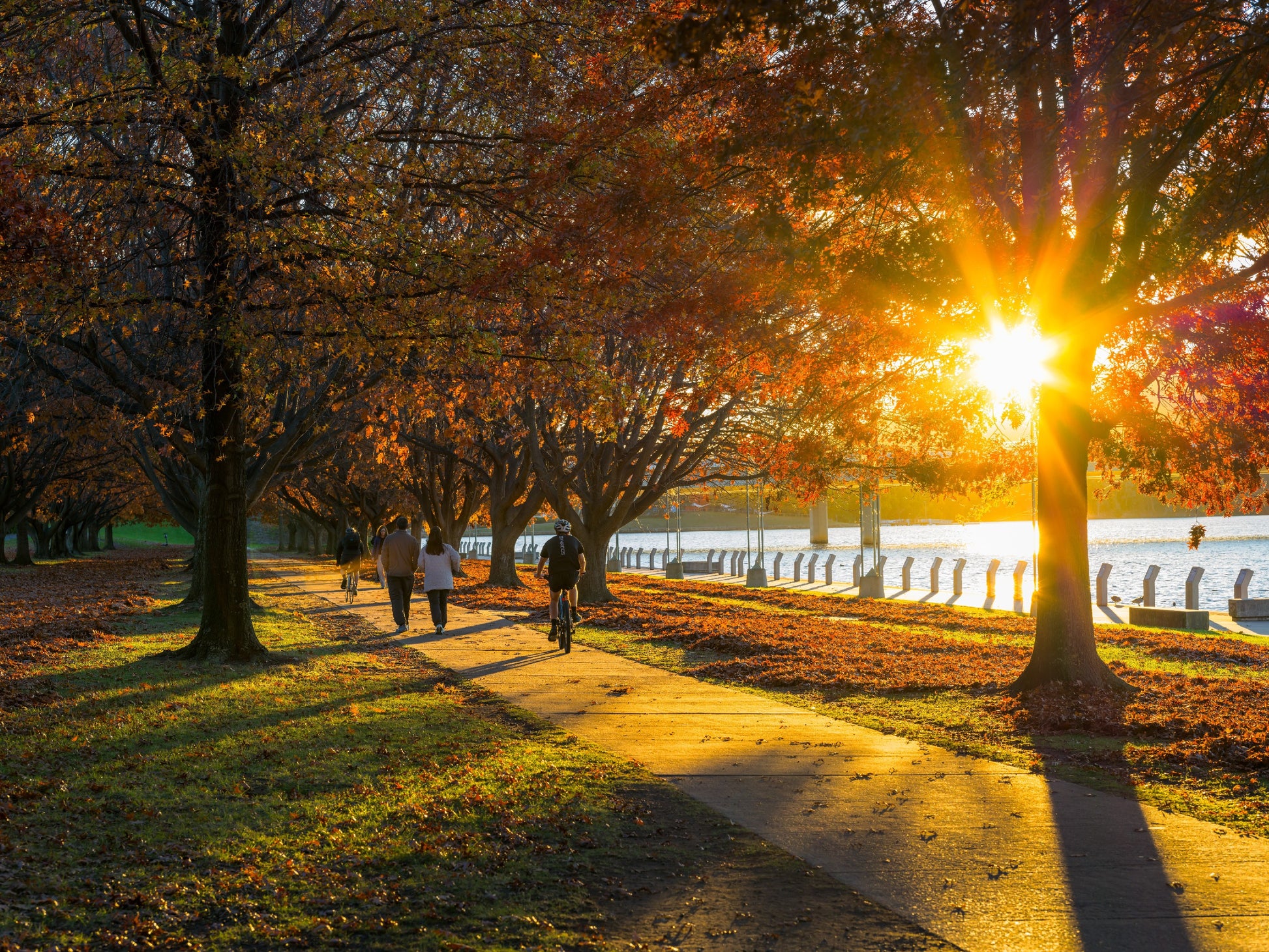 Early evening as the sun sets over Lake Burley Griffin in Canberra